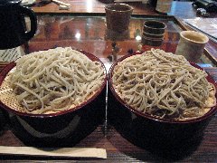 | 上田、「おお西」の挽きぐるみそばと田舎そば (そばの色が全然違います) |