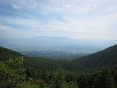 車坂峠からの景色 (眼下は小諸、その先に八ヶ岳) |