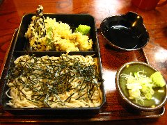 上山田温泉、「豊年屋」の天ざるそば |