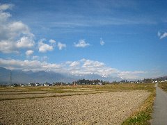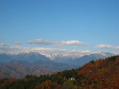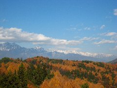 | 県道12号から北アルプスを遠望 | 国道19号へ向かう、とある農道から景色 (一帯が紅葉しています) |