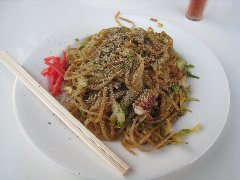 | 富士宮、白糸の滝 | 富士宮、「ここずらよ」の焼きそば (富士宮焼きそばです) |