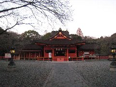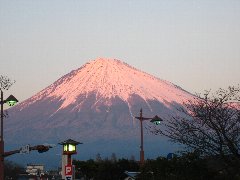 富士宮、浅間大社の拝殿 | 浅間大社からの赤く染まった富士山 (一日中富士山ばっかりでした) |