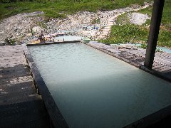 八幡平、「後生掛温泉」の大浴場 | 「後生掛温泉」の名物、泥風呂 (底には泥が沈んでいます) |