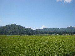 | 鹿角市、県道191号沿いの風景 | 県道309号からの森吉山と太平湖 (かなり山奥です) |