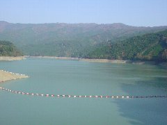 | 井川大橋からの井川湖の風景 | 「もりのいずみ」の露天風呂 (大井川が見えます) |