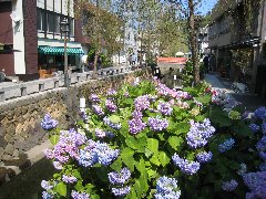 | 下田、ペリーロードの風景 | 下田、ペリーロードに咲くアジサイ | 下田、「寿々女鮨」の地魚寿司 | 下田の山間、「昭吉の湯」の露天風呂 (お湯が熱い以外はなかなかいいです) |