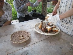 「森のおくりもの」のパンの試食 (ほとんどの種類のパンを試食できました) |