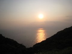 | 西伊豆、県道17号からの夕日 (きれいですね〜) |