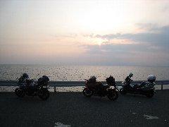 西伊豆、戸田の夕日とバイク3台 | 西伊豆、戸田の夕日 (この後、雲に隠れてしまいました) |