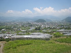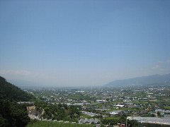 塩山、牛奥みはらしの丘からの景色A (中央本線も見えて模型のようです) |