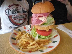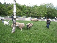 | 八ヶ岳牧場のヒツジとヤギ | 「まきばレストラン」からの八ヶ岳 | 「まきばレストラン」の清里ジャンボバーガー (でかい!) |