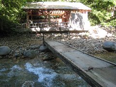 真湯と女(目)の湯の間に架かる橋 | 「元湯夏油」の大湯 (一番大きな露天風呂です) |