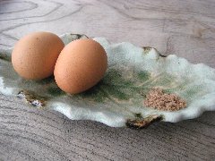 製塩所で頂いたゆで卵 (藻塩が付いています) |