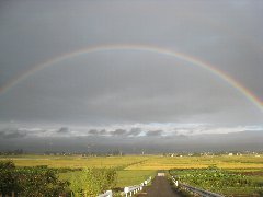 会津坂下付近で見えた虹 (濃い虹の外側に薄い虹が出ています) |