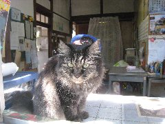 芦ノ牧温泉駅、ネコ駅長のばす@ (帽子かぶってます) |