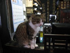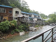 | 那須、「北温泉旅館」 | 「北温泉旅館」の河原の湯 | 「北温泉旅館」の猫 (帳場に居座っています) |