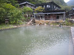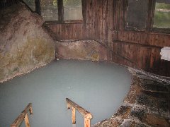 | 泥湯温泉、「奥山旅館」 | 「奥山旅館」の大野天風呂@ (広いです、そして濃いです) |