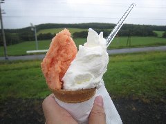 「松楓荘」の温泉卵 | 安比高原、「エッコラジェラーティ」のジェラート (トマトとミルク) |