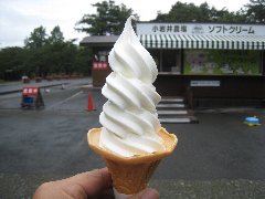 「森林ノ牧場」のソフトクリームとコーヒー (ジャージー牛のソフトクリームで濃いです) |