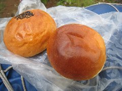 「アートベーカリー」のアンパンとクリームパン | 雫石、「玄武洞茶屋」のざる |