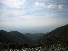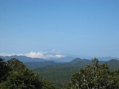 国道398号、湯浜峠付近からの景色 (正面に栗駒山が見えています) |