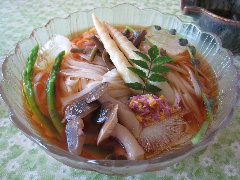 「ダムの茶屋」の冷やがけ(稲庭うどん) (美味しい!) |