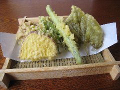 「そば茶屋てんえい」のもりそばと天ぷら (美味しいです) |