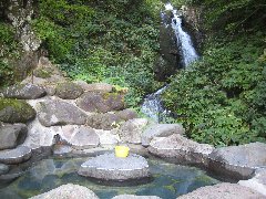 | 「仙女の湯」と滝 (滝を眺めながら入れます) |