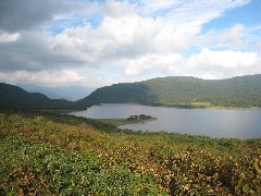 雄国沼の景色A (猫魔ヶ岳のその上に磐梯山が見えます) |