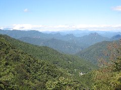 | 塩の沢、「やまびこ荘」の露天風呂 | 国道299号、志賀坂峠からの景色 (遠くに武甲山が見えます) |
