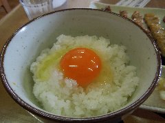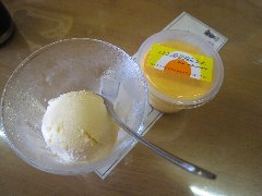 | 「中村農場」、八ヶ岳卵の卵かけご飯 | 「中村農場」、八ヶ岳卵のプリンとアイスクリーム (どちらも美味しいです) |