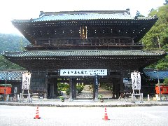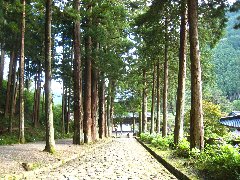| 津金学校の校庭 | 津金学校、校庭の先に見える田んぼ | 身延山、久遠寺の山門 | 久遠寺、山門から続く杉並木 |