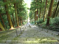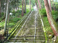 | 久遠寺、本堂へ続く菩提梯(階段) (高低差104m、287段の石段) |