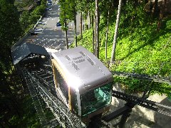久遠寺、本堂脇にある斜行エレベーター (あるなら先に言ってくれ!無料です) |