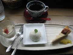 | 「アースガーデン」のスイーツセット | 奥多摩湖の風景@ (この時点では少し晴れています) |