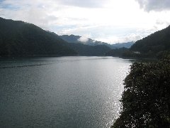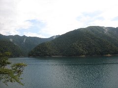奥多摩湖の風景A (上流方面も少し晴れています) |