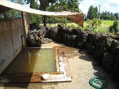 | 七味温泉、「紅葉館」の露天風呂 (乳白色の温泉です) |