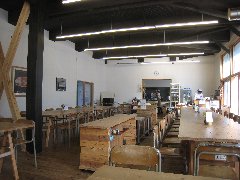 松之山、三省ハウスのカフェ (木造の元校舎と懐かしい机と椅子) |