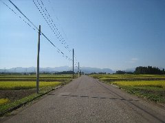 | 県道66号(豊野南志賀公園線)からの景色@ (志賀高原方面が見えます) |