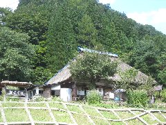 鬼無里の「観音そば」 (茅葺き屋根です) |
