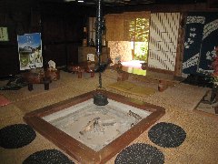 「観音そば」の店内 (囲炉裏があります) |