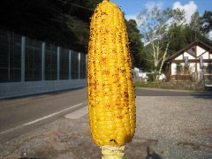 片品、「香沢庵」の焼トウモロコシ | 桐生、「藤屋本店」のカレーセイロひも川 (ひも川とは超平べったいうどんです) |