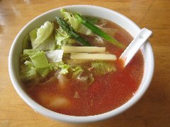 会津田島、「ヴォーノ」のトマトラーメン (トマトのスープ、美味しいです) |