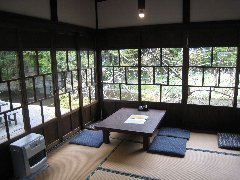 | 大子町、「待月」の店内 (外には川が見えます) |