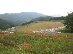 彩の国ふれあい牧場の近くのポピー畑 (畑の下部からの景色) |
