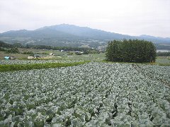 嬬恋村の風景@ (浅間山とキャベツ畑) |