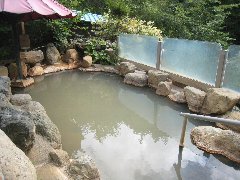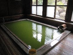 | 志賀高原、「熊の湯ホテル」の露天風呂 (温泉が緑色です!) |