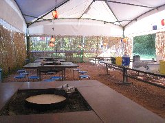 「はぎわら観光ヤナ」の店内 (大きなテントです) |