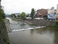 高山の朝 (宮川の向こう側では朝市やってます) |