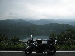 遅い夏休みを取って北陸方面に行ってきました。 1日目は、開田高原から濁河温泉を経由して高山まで行きました。濁河温泉から西へ向う県道441号は景色はいいですがかなりハードです。御嶽山は曇っていて見えませんでした。遠回りして萩原という街に寄り、ヤナ場で鮎を食べました。 2日目は、有峰湖を経由して富山に抜け、そこから上越高田まで行きました。油断にて入った県道89号はかなりハードな道でした。途中で猪の親子に遭遇しました。親猪はこちらを威嚇しています。猛進されたらどうしようと、あまりの恐怖にただ去るのを待ちました。有峰湖は曇っていてお目当ての薬師岳は見えませんでした。その後に寄った落差日本一の称名滝は大迫力でした。でも駐車場からは上り坂を結構歩きます。小川温泉の洞窟風呂は鍾乳石のドームが出来ていました。高田の魚は美味しかったです。 3日目は、小布施の有名な蕎麦屋に寄ってから、志賀高原、草津を経由して帰りました。志賀高原の熊の湯ホテルの緑色の温泉はとても珍しかったです。渋峠から先は濃霧で前の車が見えないほどでした。 有峰湖、称名滝、関田峠など初めての場所に行くことが出来ました。途中少し雨に降られましたが、天気はなんとか3日間持ちました。でもすっきりと晴れることは無かったので眺望はイマイチでした。短めの夏休みツーリングでしたが、疲れてしまって帰りの渋川からの高速はとても辛かったです。歳のせいか、体力が無くなってきたのかな・・・ |